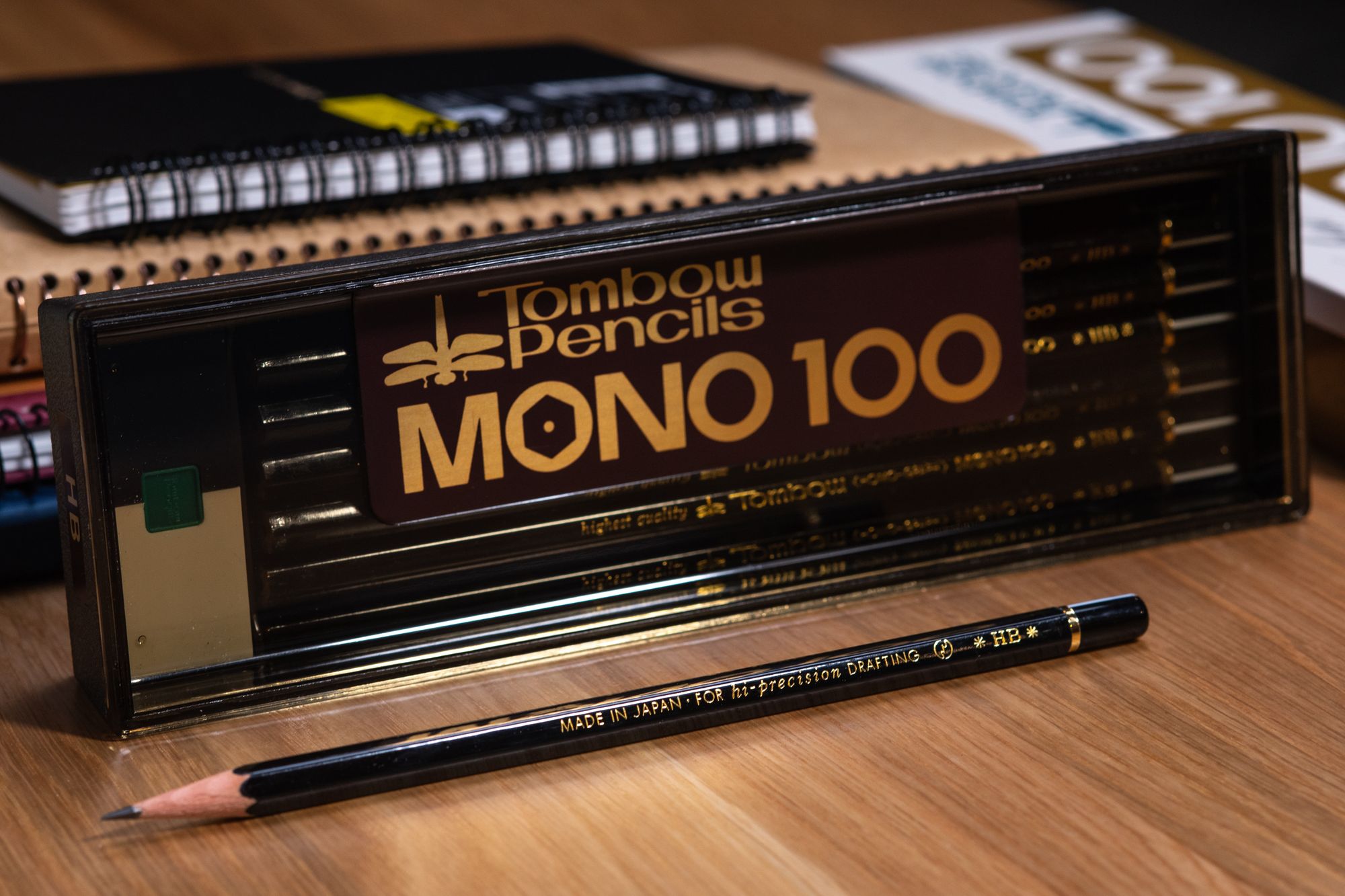 Tombow wasn't far behind with its own aspirational pencil, and MONO 100, the last premium pencil launched by either manufacturer to this day, appeared in stores in 1967. It was perhaps a sign of an emerging détente that MONO 100 debuted at exactly the same retail price as Hi-Uni: 100 yen each.